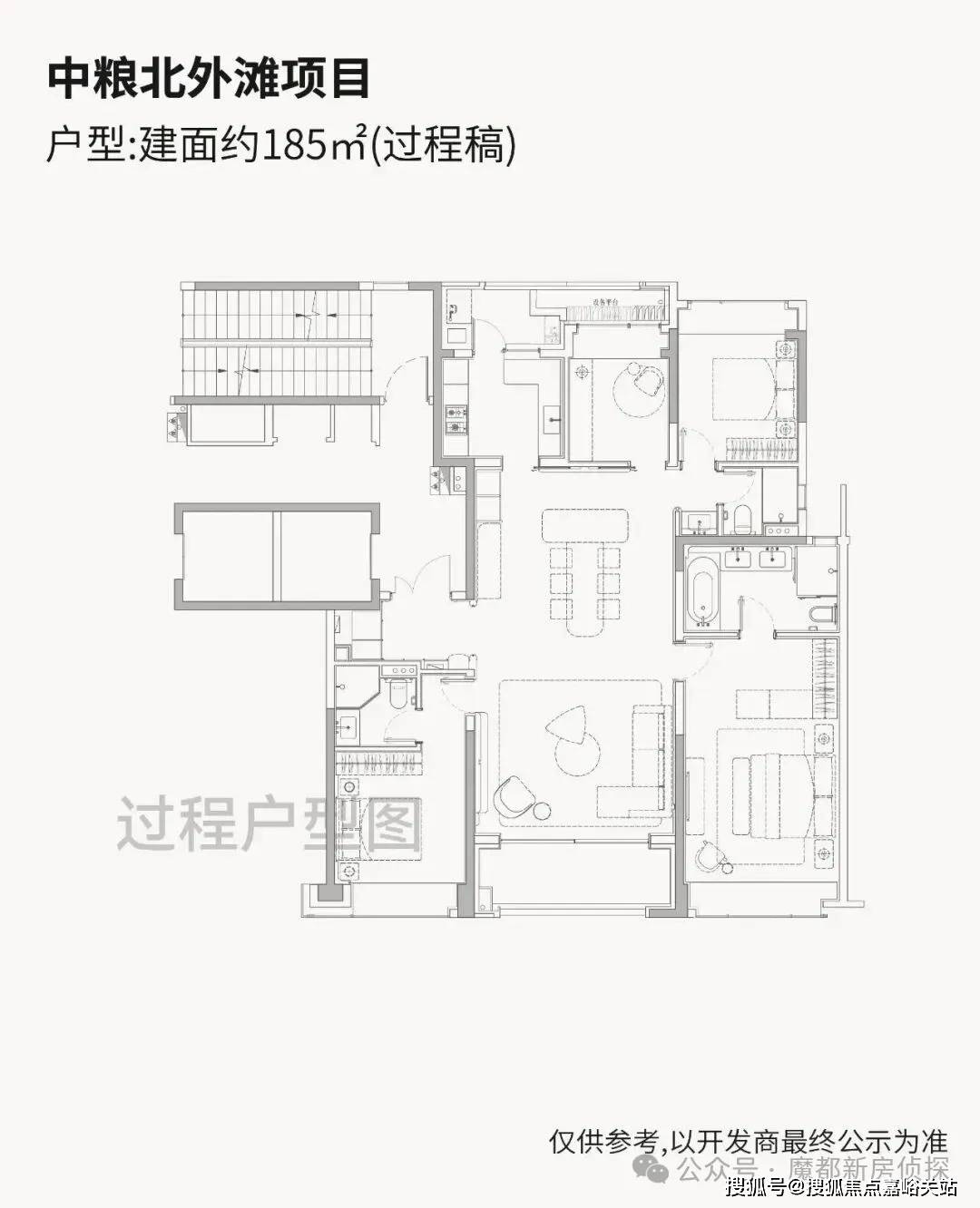 「中粮·北外滩壹号」即将入市的高层户型建面约185-228㎡纯粹4房,尺度感相当奢阔!高层户型均为两梯两户独立电梯厅配置,隐私性与尊崇感拉满!全落地窗设计,270°环幕大边厅户型相当惊艳!超大窗墙比+双套房格局形成多维观景的极致效果!仅90套,珍藏属性拉满!