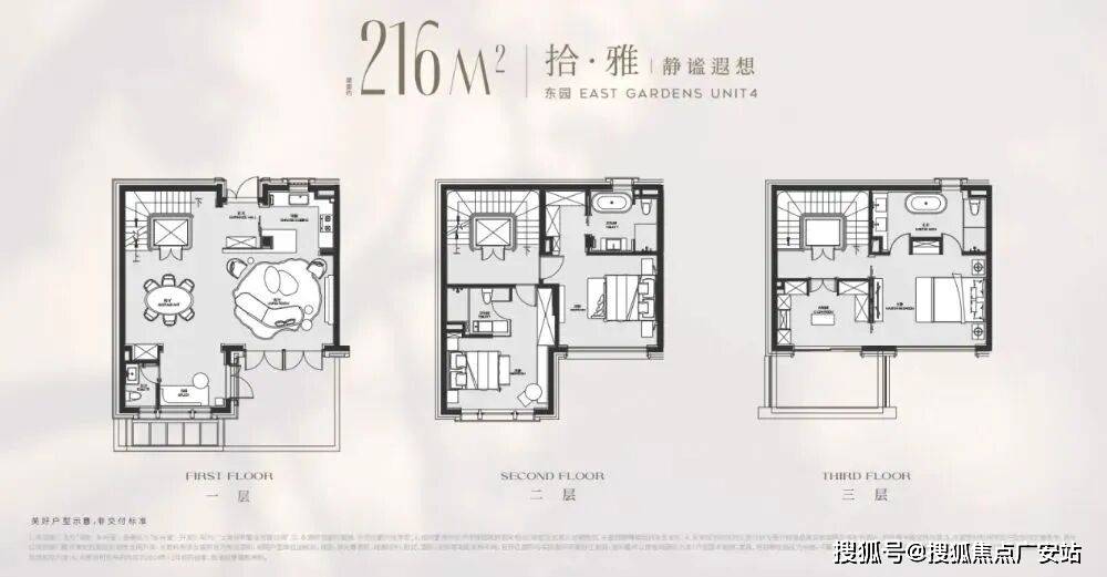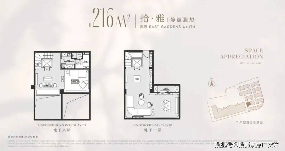 以建面216平户型为例,地面总高3层,地下一层5.5米带夹层,地下室面积就达到120m²,另外有露台、花园等,项目平均附赠也达到了约60%!
