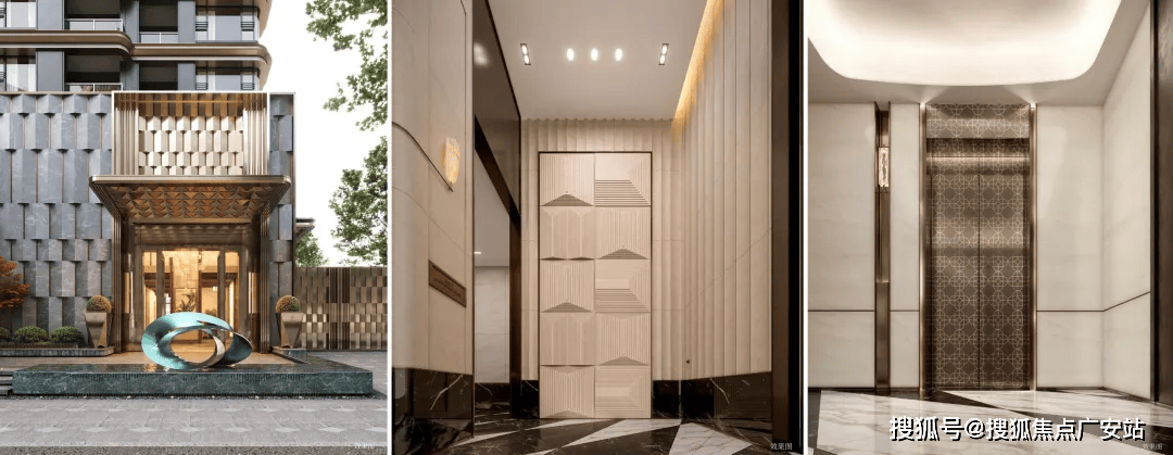 项目为装修交付,采用不低于4000元/㎡的装修标准。建筑外观采用弧形天幕立面设计,大面积玻璃天幕与香槟金铝板条相结合,实现了内外空间的无缝衔接。社区内复刻了和平饭店经典的酒店式门庭设计,引入了酒店式双线归家仪式流程,包括五重入户礼仪与四重车辆迎接规范,为业主提供尊贵的归家体验。
