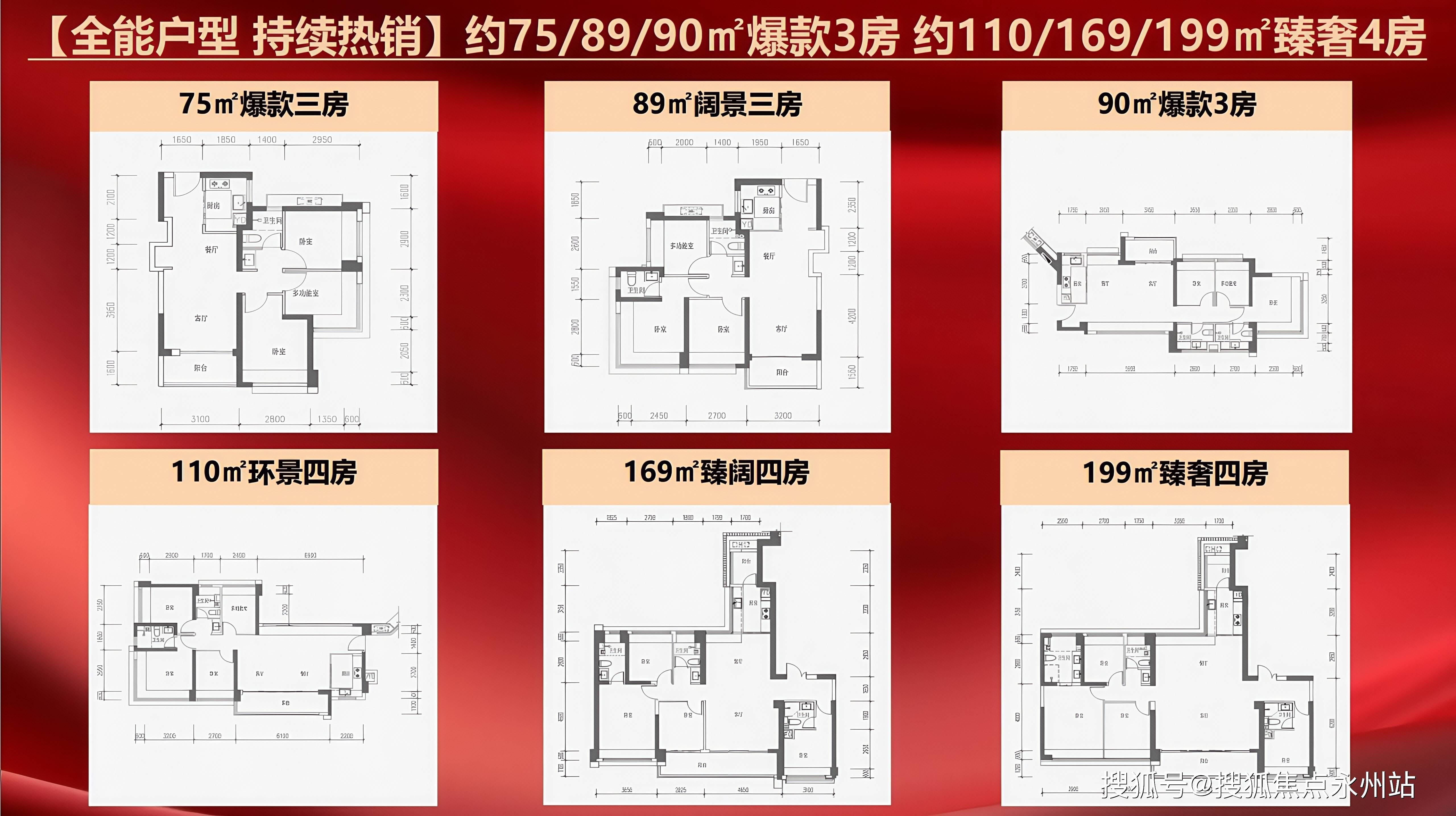 其他户型图鉴赏:建面约75㎡-199㎡全能3-4房,项目不加赠送的得房率为74-77%,但加上赠送面积后,得房率可达84-96%,最高甚至达到97%
