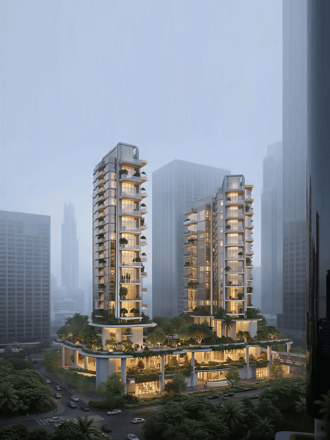 仅从效果图来看,融合新加坡垂直绿洲、迪拜超未来主义、迈阿密度假风三大国际豪宅风格进行打造,非常具有科幻感。