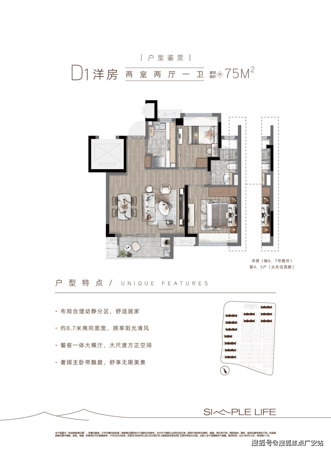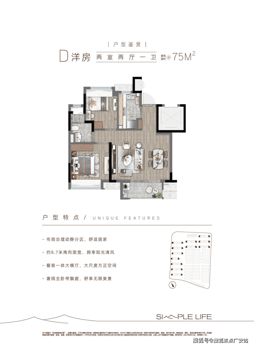 项目合计47幢楼,其中洋房12幢554套,联排33幢301套,项目整体分两批次推出,总计855套。采用人车分流,即保证社区整体设计的美观,又保证业主的安全性,车位有920个,做到1:1的比例。